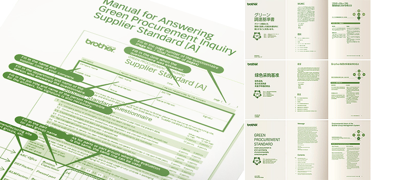 Brother Green Procurement Standard Part of environmental communication between Brother and it’s uppliers. The Standard has been developed to specify substances for which the use in Brother’s products is restricted or discarded in promoting green procurement activities. |