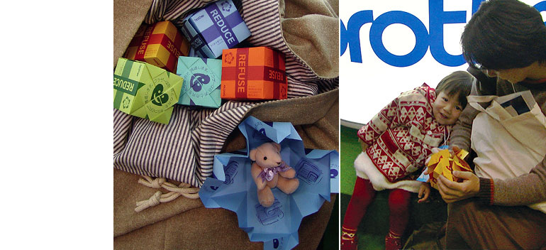 Attending big "Eco-kai" sometimes turns out to be an exhausting marathon. We aimed to create an hospitable, relaxing atmosphere inviting guests to pause and experience the world of brother. Give aways corresponding to the booth's theme tend out to be a treasured souvenier. |