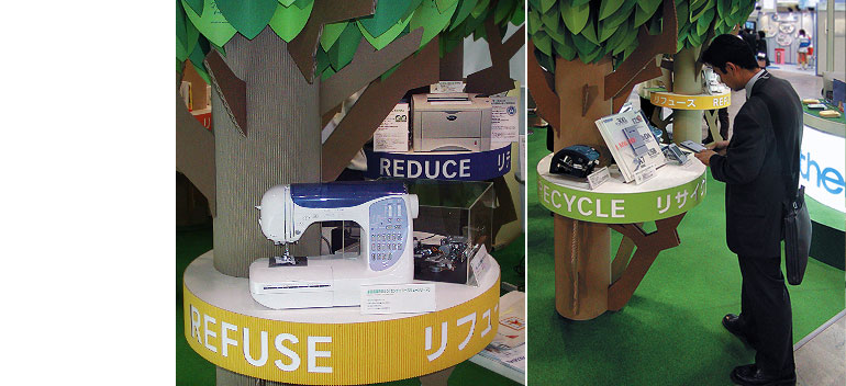 The five trees where representing the keywords of Brother's environmental activities in a familiar and easy-to-understand manner.